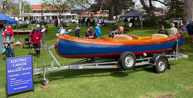 Denmark Rowers organised the third Denmark Classic Boat Show as a fund raiser for a new rowing shed. The show was a great community success with locals and visitors enjoying the boat displays and the on water activities despite the rain showers. The popular Cordless Drill Challenge race had the crowd cheering and laughing on the river bank. The eight entrants had come up with a wonderfull variety of propulsion systems based on 18V power tools including a boat driven by twin leaf blowers. The Rowing Pursuit Races were also a crowd pleaser with teams from Albany, Royal Freshwater Bay Yacht Club, East Fremantle, and Nannup taking part. building to a close final race where East Fremantle beat the local Denmark Rowers by one second. There were over 30 beautiful boats on display and toy boat building for the young at heart.