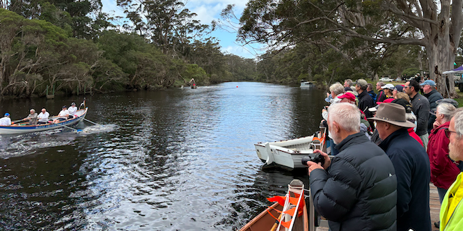 Denmark Rowers will hold it’s third Classic Boat Show on the beautiful Denmark River in Western Australia. This year the show will include Skiff Pursuit Races where skiffs start around a 300m course in opposite directions and turn at an upstream and downstream mark and finish in opposite directions. This is a real crowd pleaser and novices under an experienced cox can give it a go safely in a narrow river. All crews welcome to use Denmark Rowers’ skiffs. Depending on seriousness of registrations a knockout competition may be run.